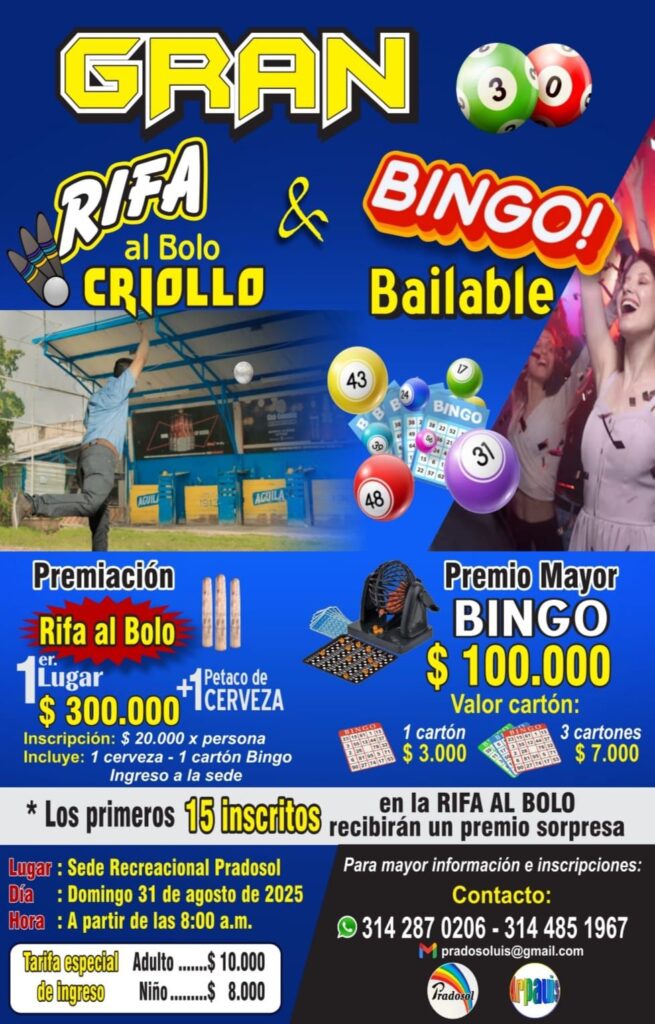 El pasado 31 de agosto, en la sede recreacional Pradosol, se llevó a cabo con gran éxito la actividad de Rifa, Bolo y Bingo Bailable, un vento que reunió a asociados y sus familias en un ambiente de integración y alegría. Durante la jornada, los asistentes disfrutaron de dinámicas recreativas, premios especiales y un espacio bailable que fortaleció los lazos de compañerismo entre la comunidad. Agradecemos la participación de todos quienes hicieron posible esta actividad y reiteramos nuestro compromiso de seguir generando espacios de encuentro y recreación.