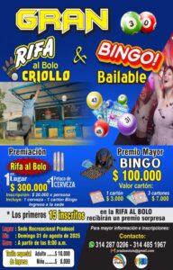 Gran Rifa, Bolo y Bingo Bailable